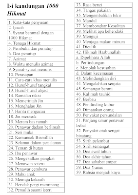 Isi kandungan kitab 1000 Hikmat: