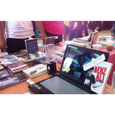 Perniagaan aku dari hari ke hari semakin maju, aku dapat beli banner/bunting 3 buah, (dan of course alas meja baru), buat Instagram, buat page di Facebook, jual beli online, COD di bandar. Perubahan ketara bila aku sudah ada nama di situ, aku tak perlu lagi merayu bagai untuk ambil tapak, awal-awak lagi penganjur dah ajak aku buka booth. Selain muka aku yang comel ni, aku di sana memang figure, sebab kalau ada mana-mana event yang melibatkan persembahan, aku memang take part untuk deklamasi puisi. Waktu tu empayar aku besar dan berpengaruh. Gila ujub aku ni. Tapi betul, siapa tak kenal Naim AlKantani si penjual buku celupar.